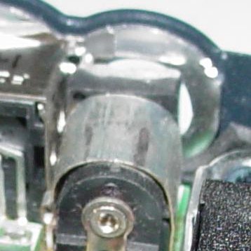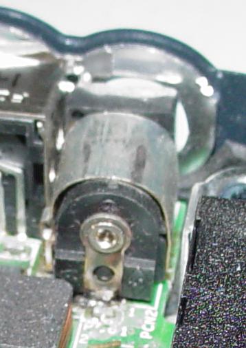 Note the burned center pin to PCB connection.